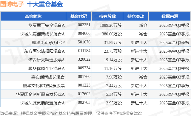 依据2025基金Q3季报公募基金重仓股数据,重仓该股的公募基金共13家,其间持有数量最多的公募基金为华夏基金的华夏军工安全混合A。华夏军工安全混合A现在规划为33.97亿元,最新净值1.9(12月24日),较上一交易日上涨3.77%,近一年上涨41.9%。该公募基金现任基金司理为万方方。